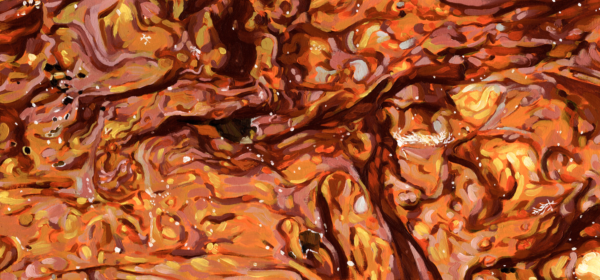 By zooming in on a single, delicate crisp of seaweed (found on a beach on Lasqueti Island), I revealed an alien landscape evoking melting caramel, molten gold, or marbled meat.