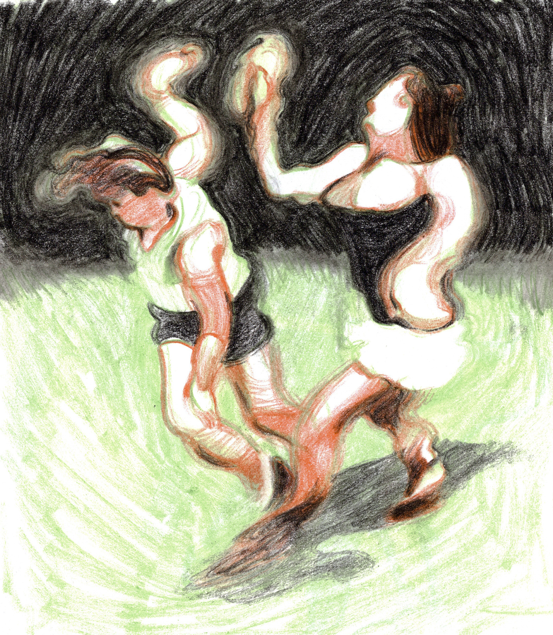 Chalk pastel and charcoal on paper.
