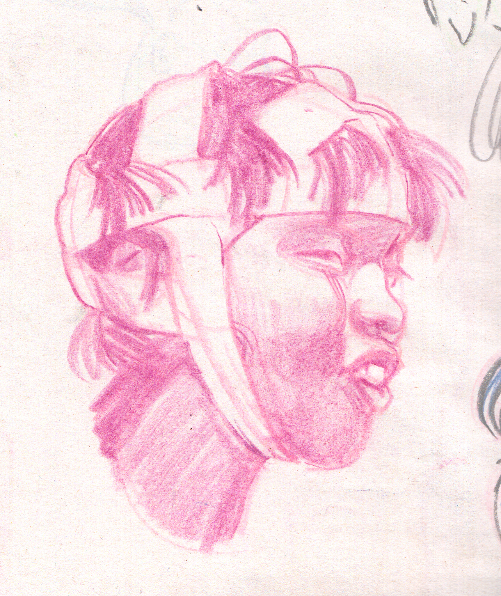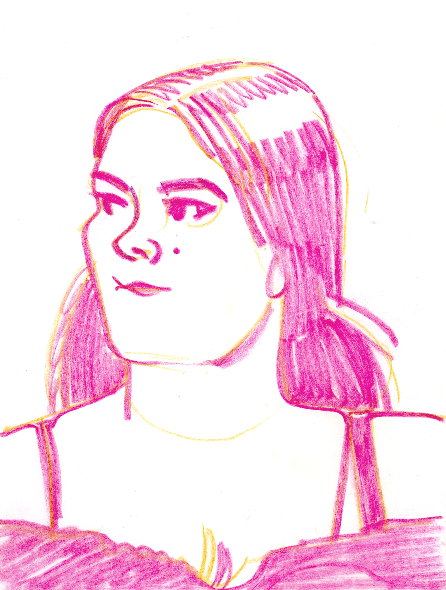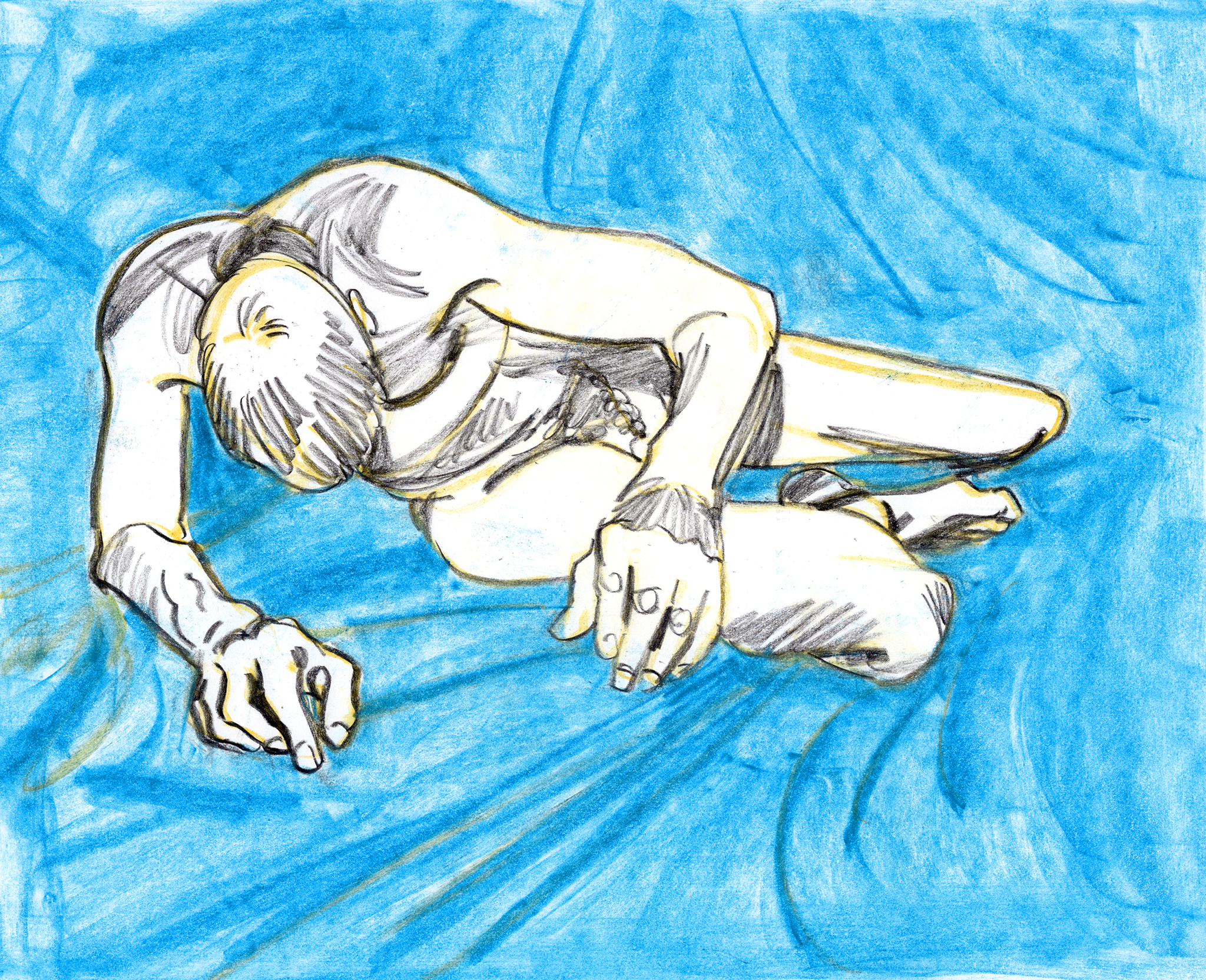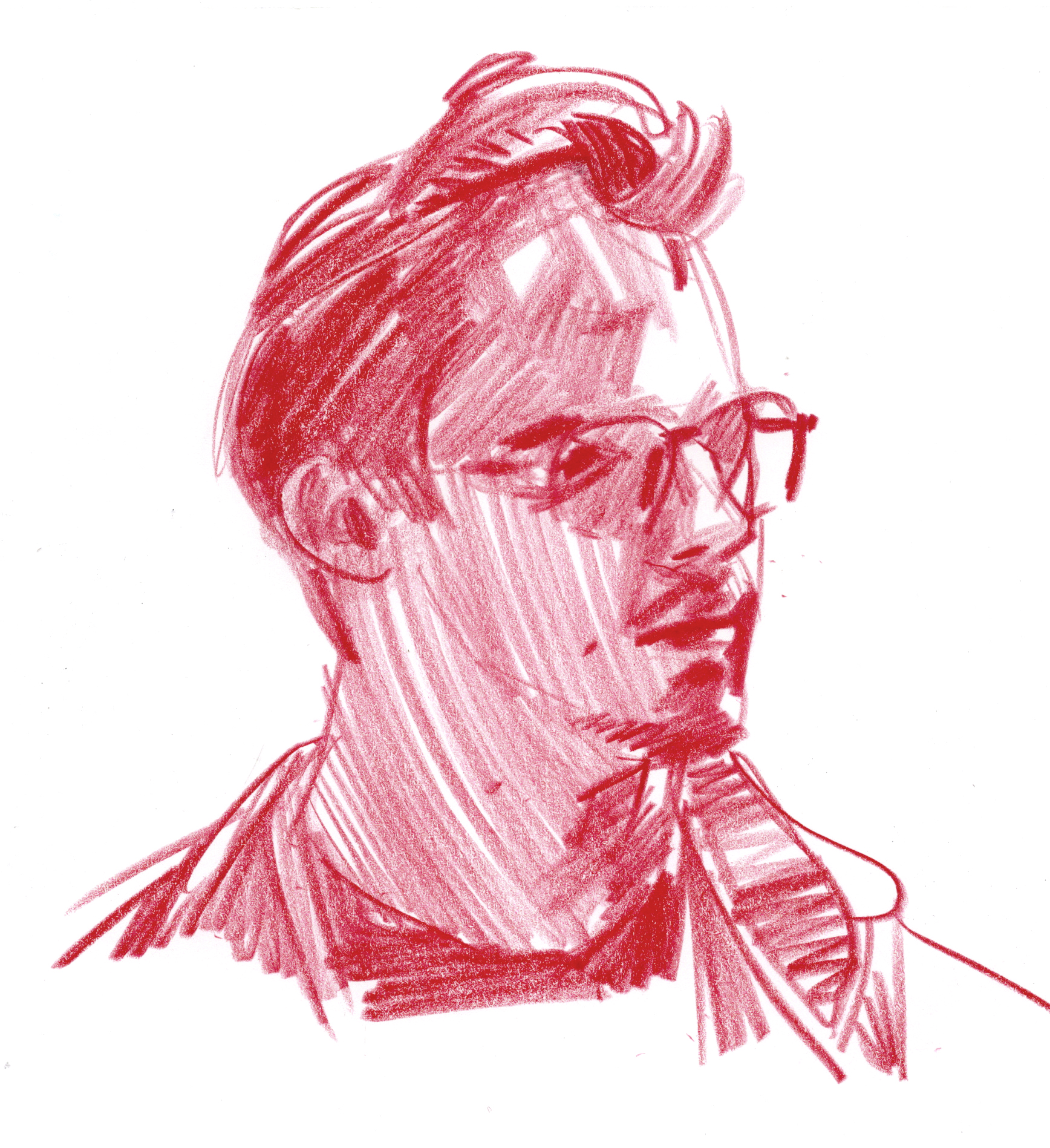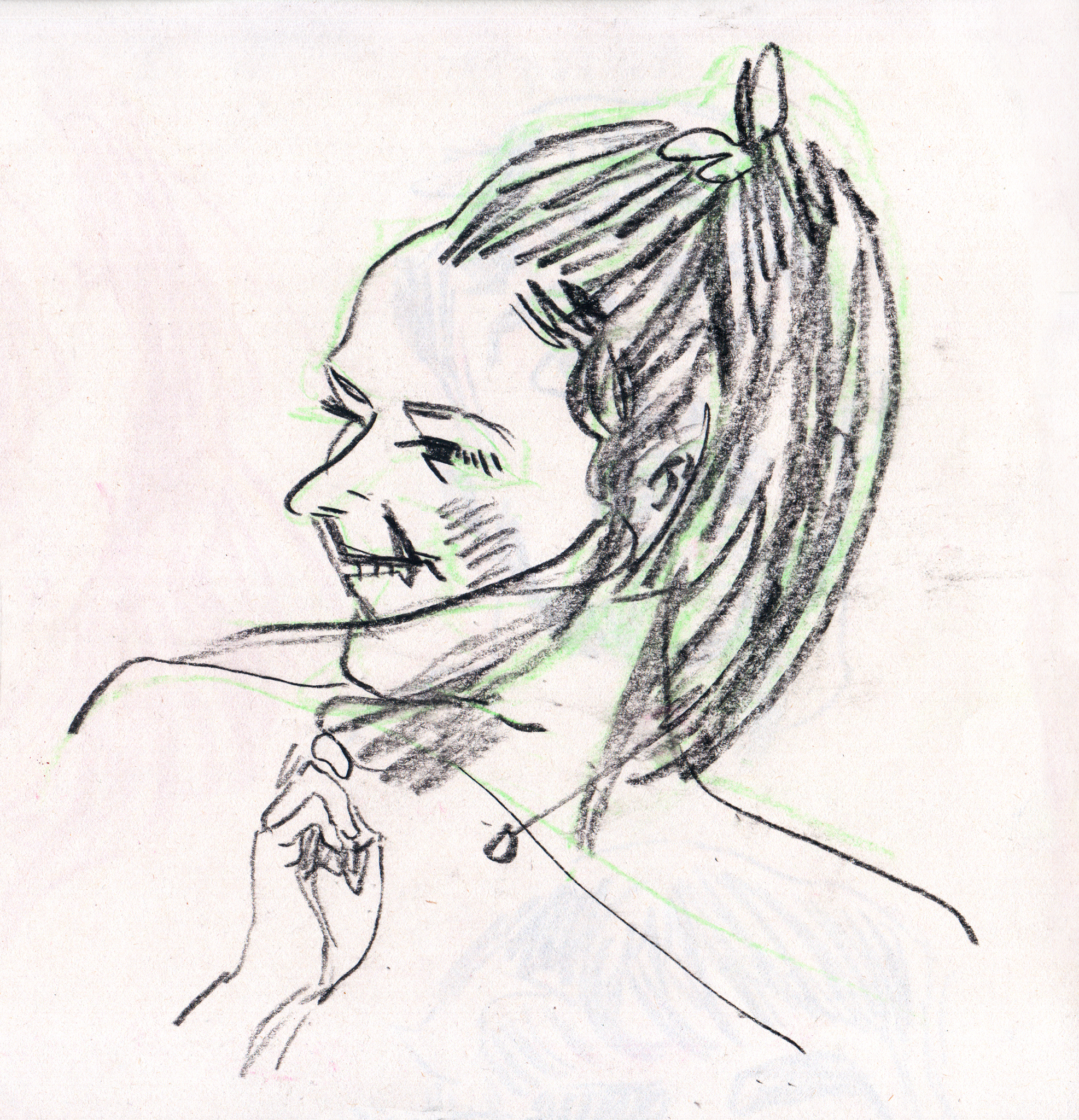 I used a still image from a low quality video as reference. I found it an interesting challenge to translate motion blur and digital artefacts into an analog drawing.