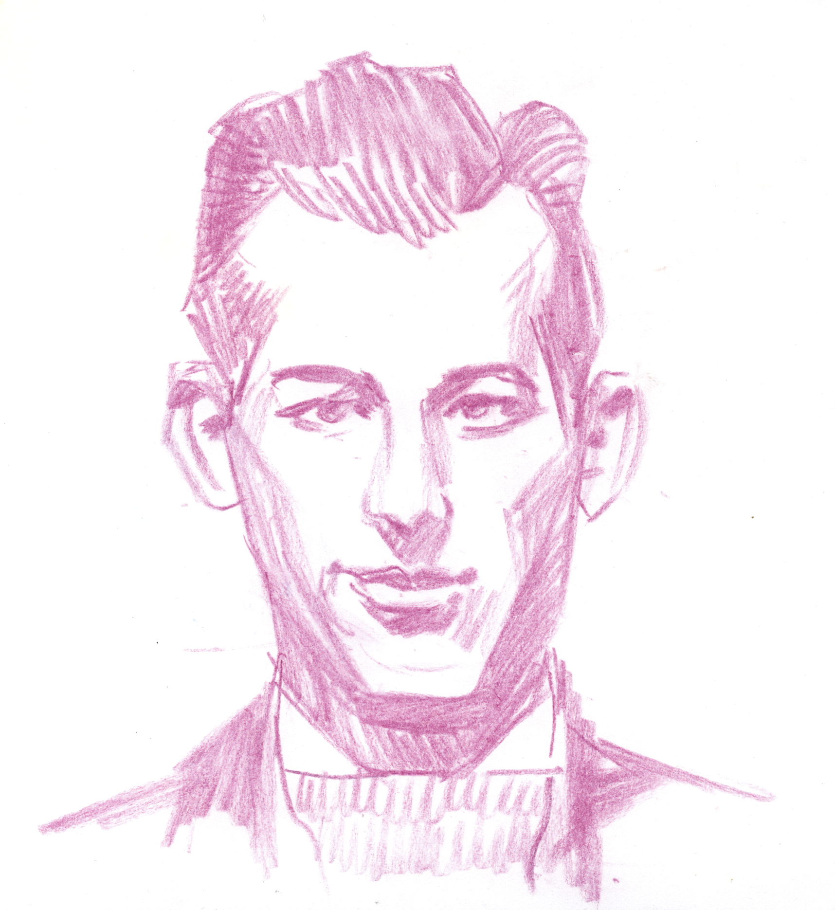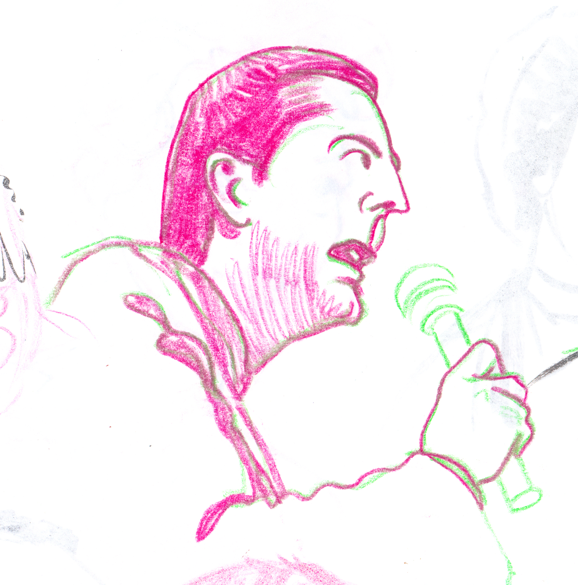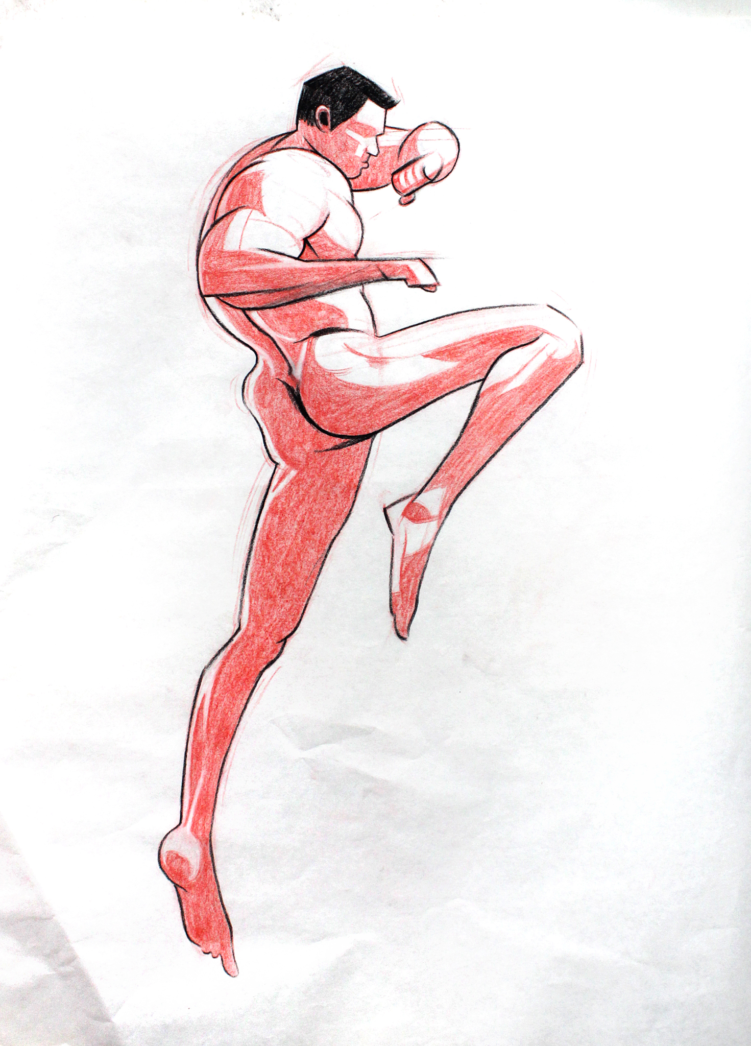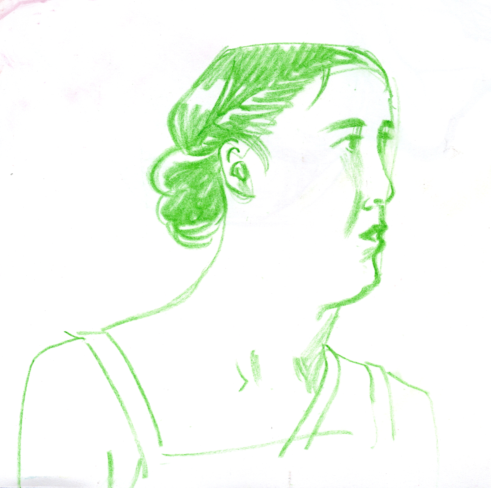 I used a still image from a low quality video as reference. I found it an interesting challenge to translate motion blur and digital artefacts into an analog drawing.