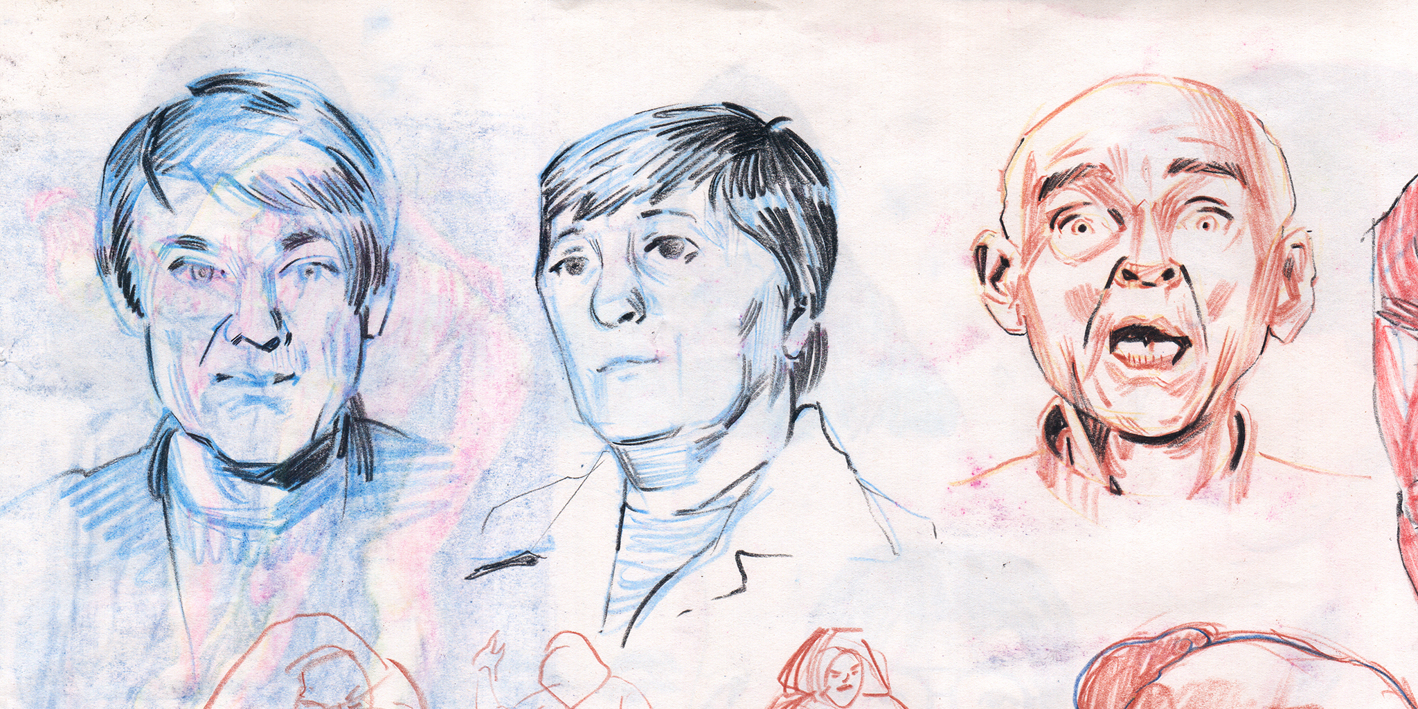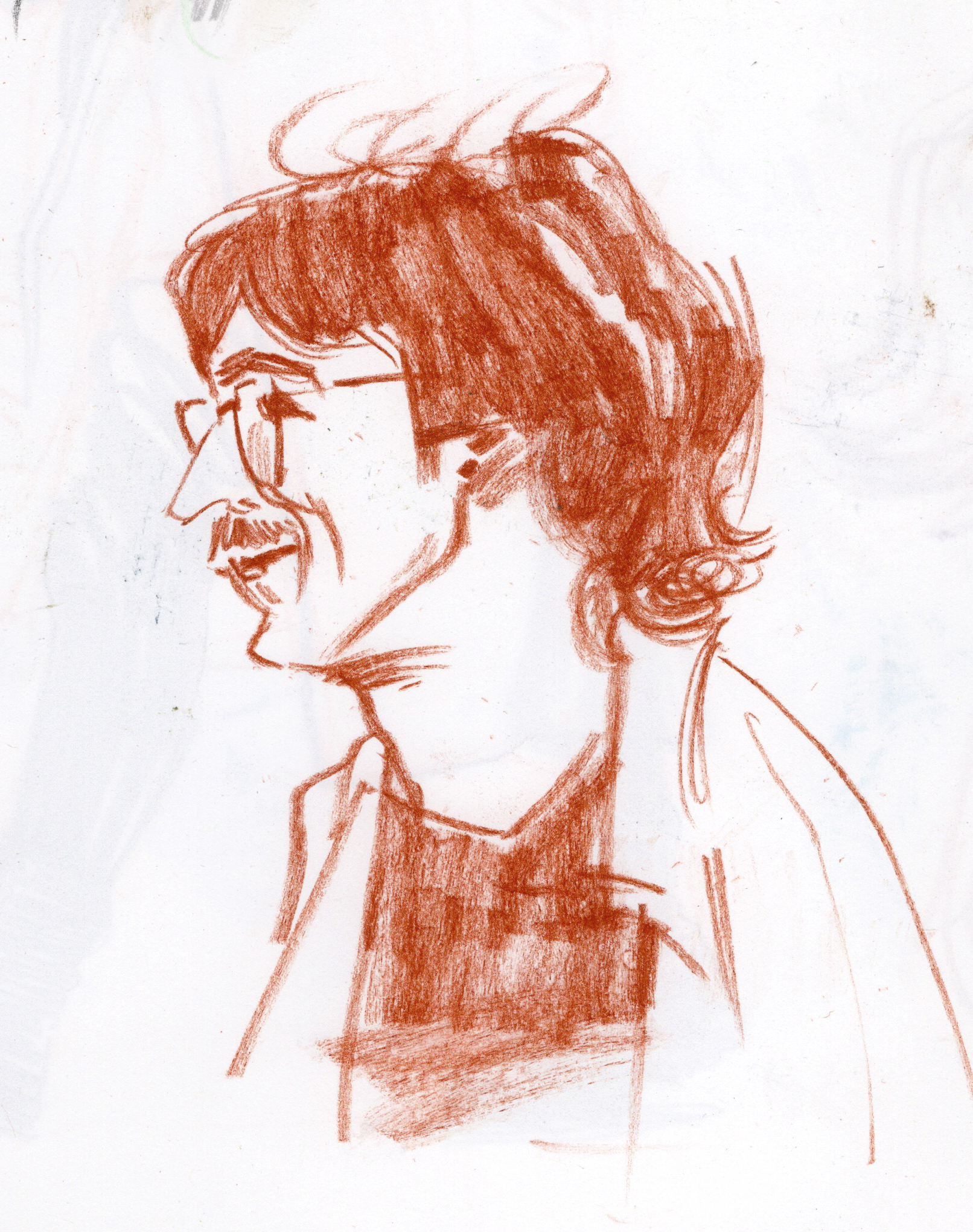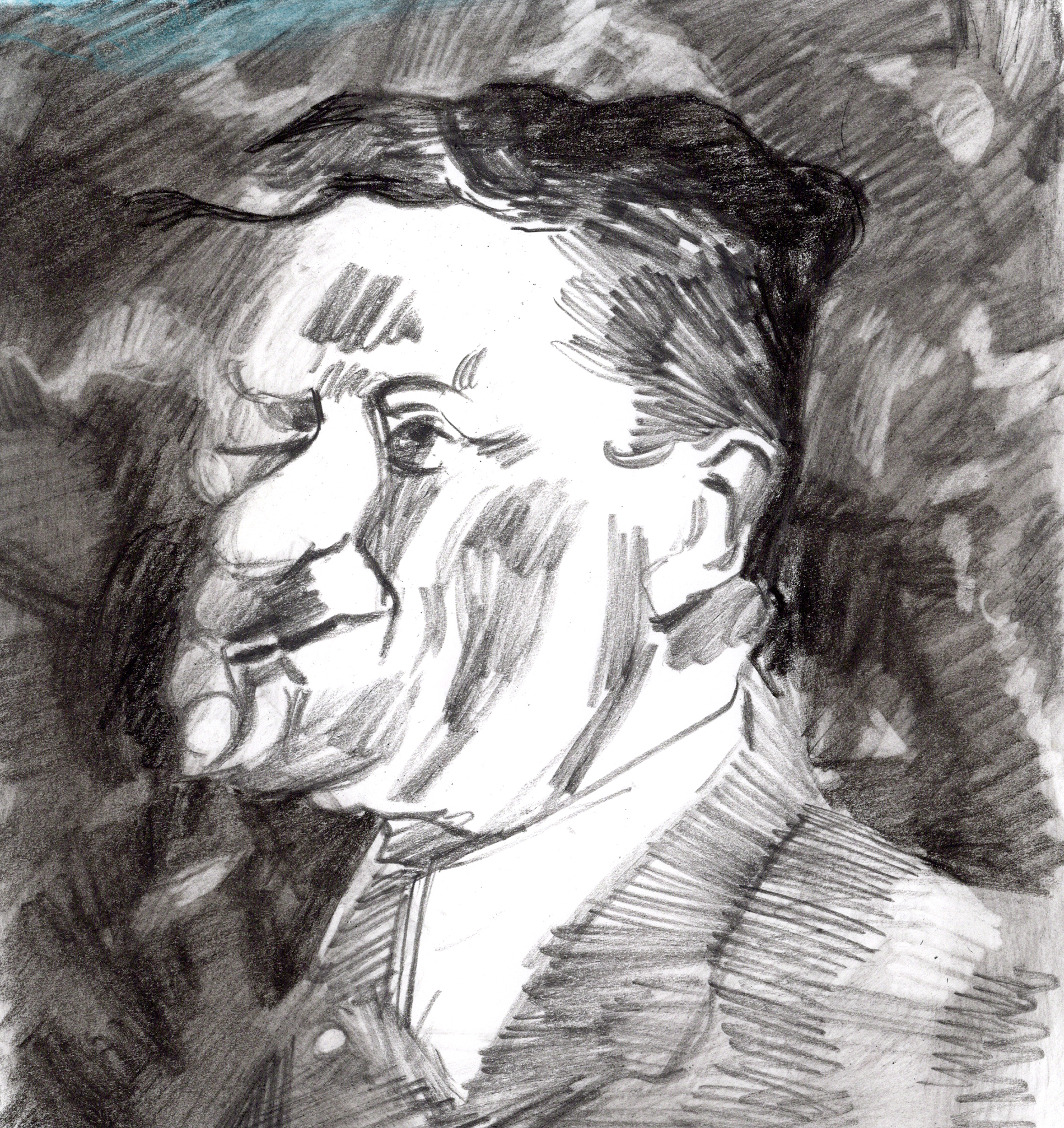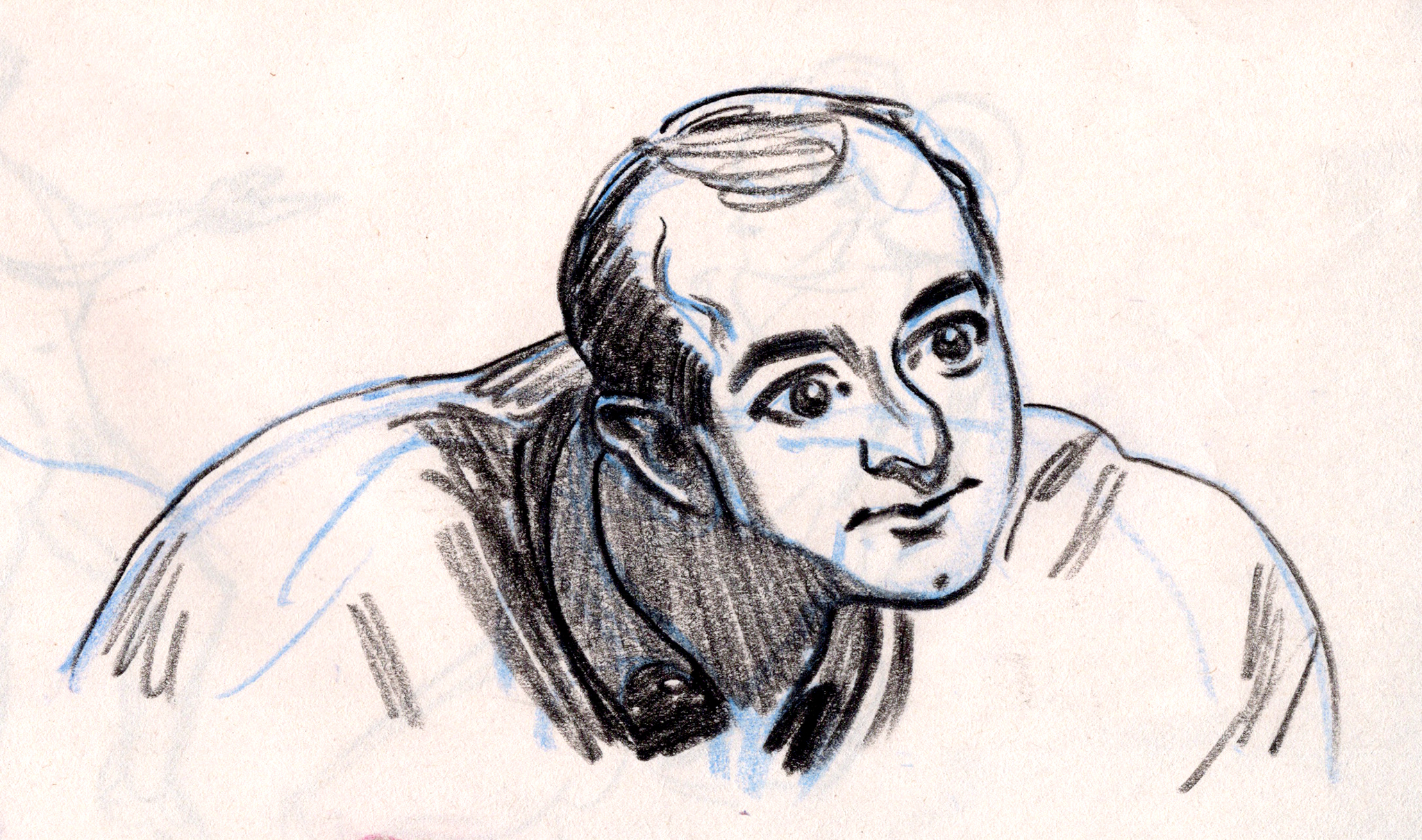 Sometimes people move in a beautiful way that I have to capture. I watched an interview with comedian Lewis Black on YouTube, and paused the video on single frames that characterized the range of Lewis’ body language. I drew from the frames while listening to clips of Lewis talking in order to infuse the drawings with his thoughts and intonation.