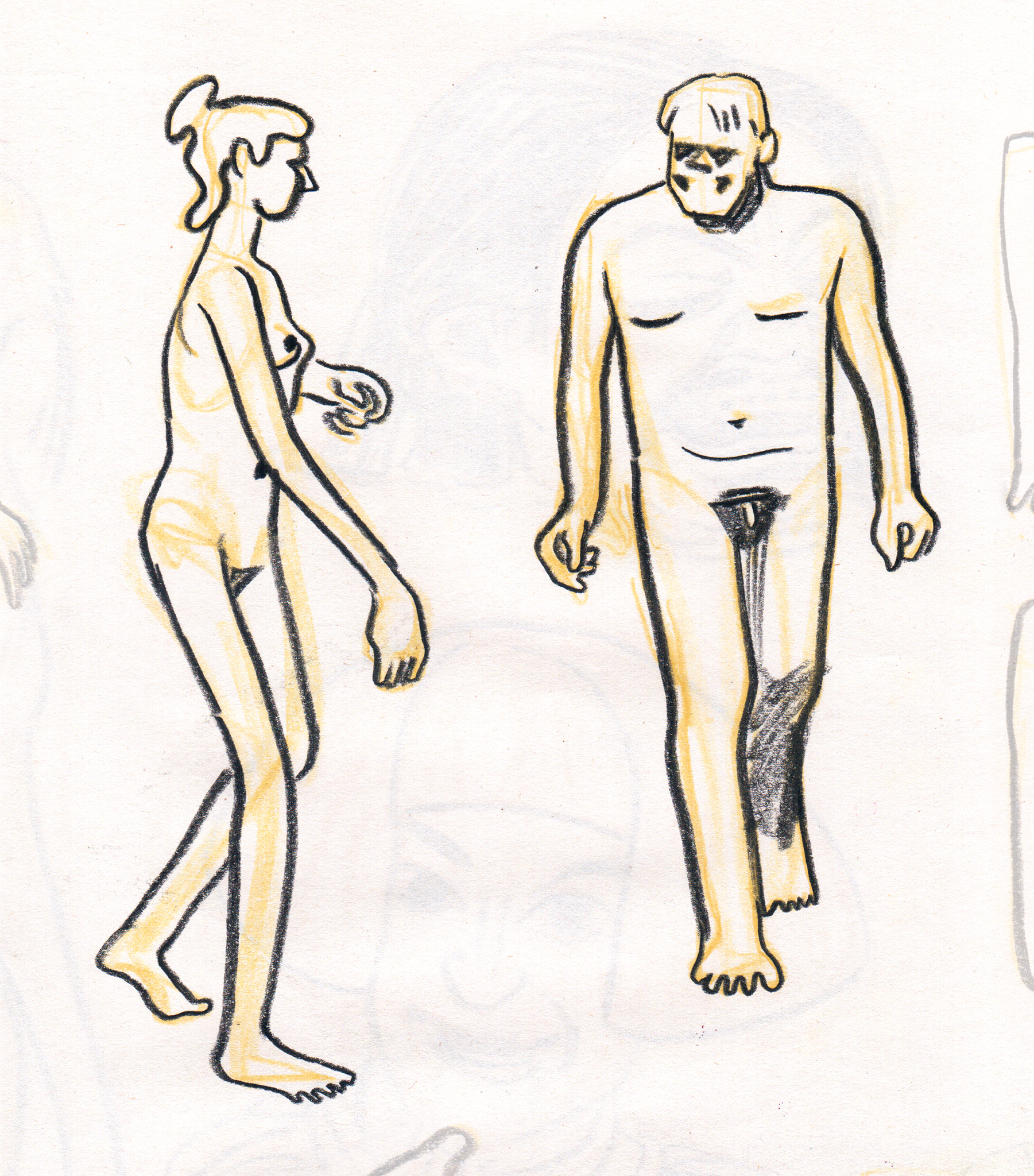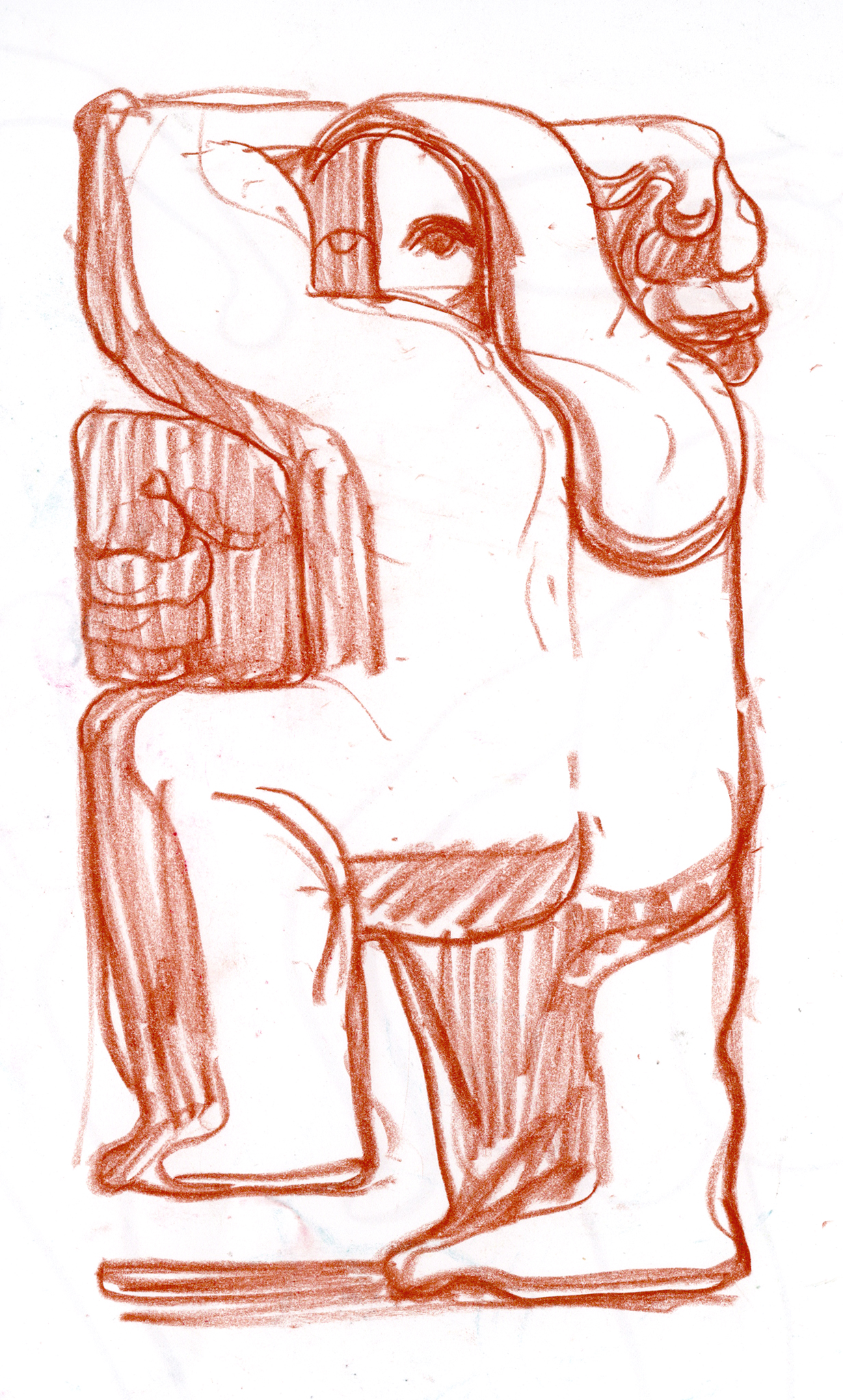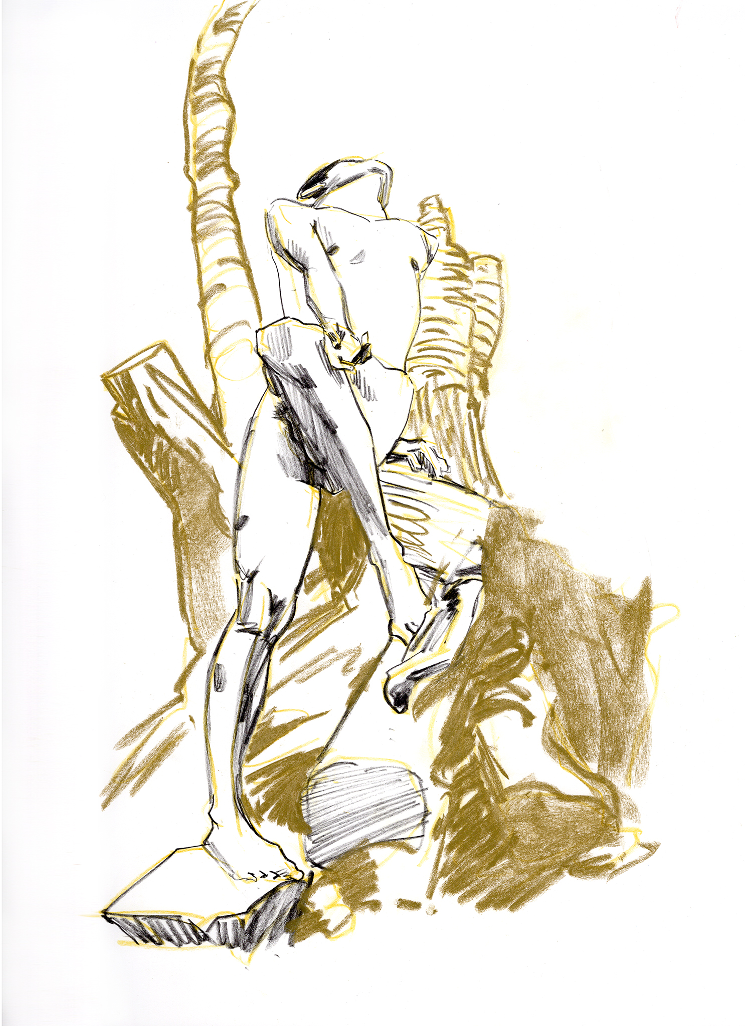 Charcoal and chalk pastel on paper.